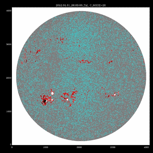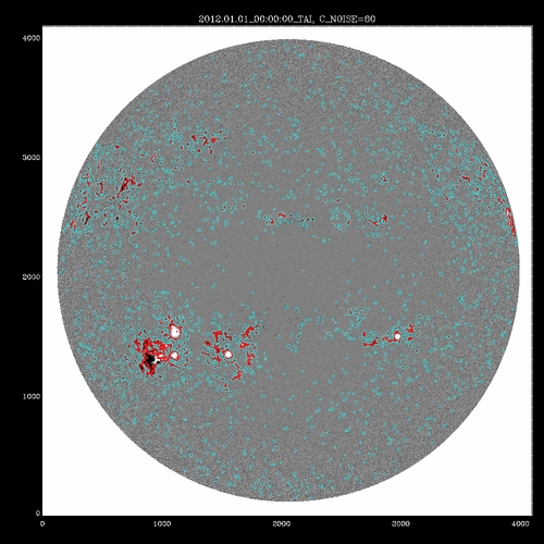 A mask is constructed consisting of those pixels with transverse field strength above the value of the noise plus the offset. This mask is then eroded to remove isolated pixels above the noise, then grown, to provide a buffer around the pixels with well measured field. All pixels within the buffer are annealed, but the annealed solution is only returned for those above the noise threshold; a nearest neighbor acute angle (smoothed) solution is returned for pixels in the buffer area.