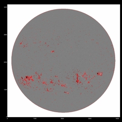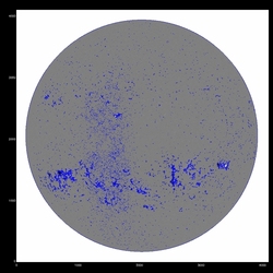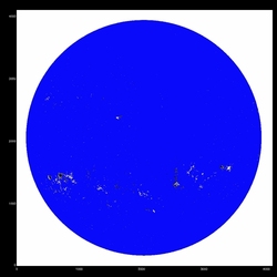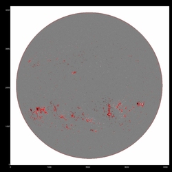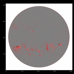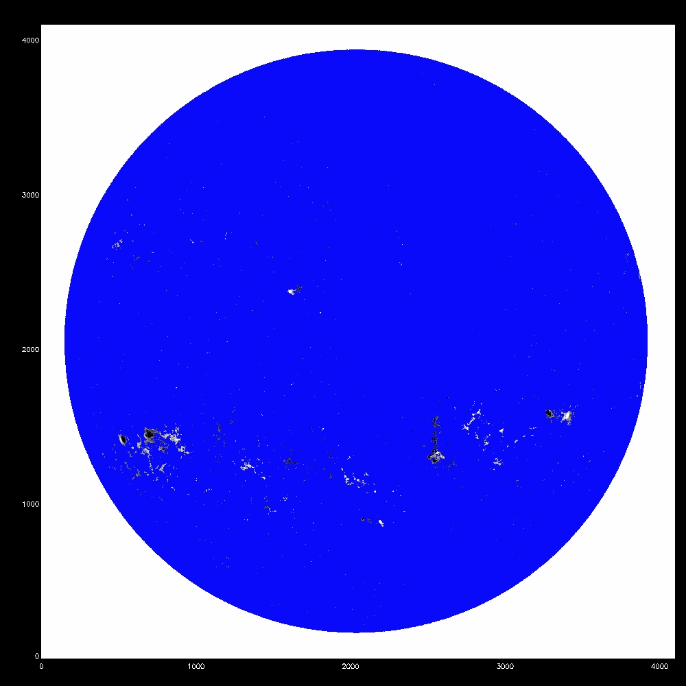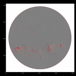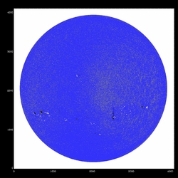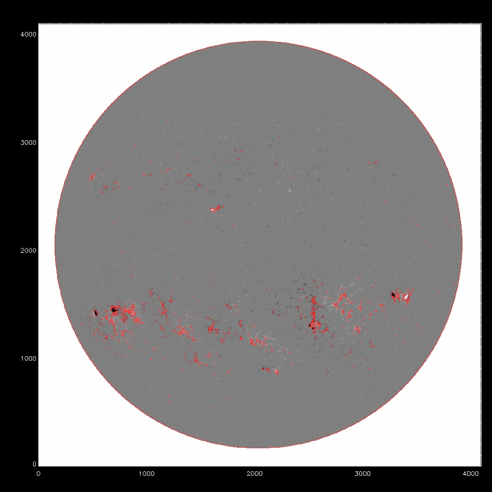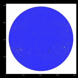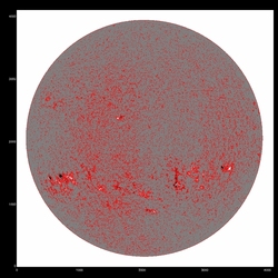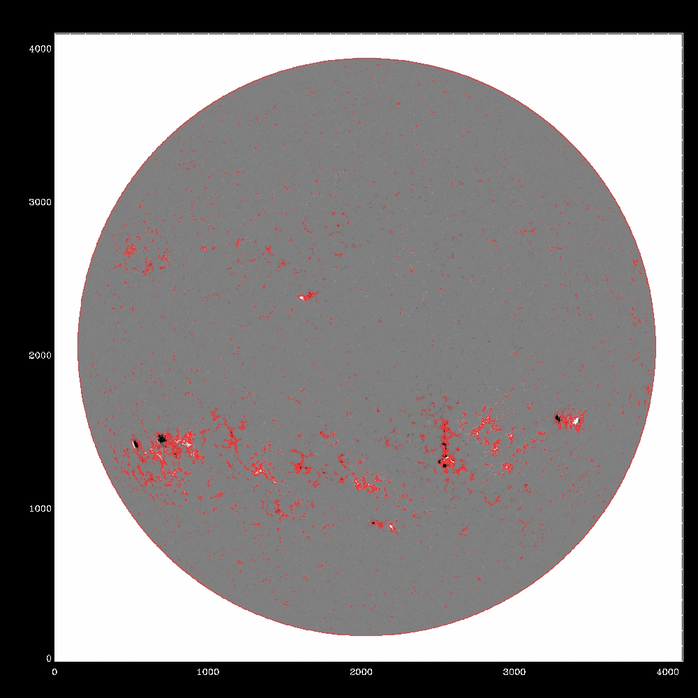 Summary:The following plots compare the 15th order fit to the median (blue) to the 15th order fit to the field itself, excluding active regions patches (red) and excluding active region "blobs" (purple), overlaid on the median (first three images) or the field itself (fourth image). The first four plots are slices at y=1024, y=1400 y=2048 and y=1400; the last image is the difference between the fits, scaled to +/-20, overlaid with contours of the field at 500,1000.