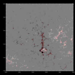 There are also some clear differences very close to the limb, with the single time fit approaching larger values at the limb. This is probably not important for the disambiguation, as I think these pixels are too close to the limb to be disambiguated using simulated annealing.